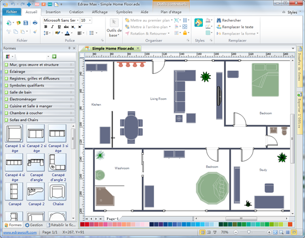Edraw Max est un logiciel parfait de plan d'étage qui comprend une grande quantité de symboles standards de conception de maison. Par conséquent, il est facile d'organiser les murs, les fenêtres, les portes, les meubles, les armoires, les électroménagers et plus encore. Il est également recommandé pour les utilisateurs d'ordinateurs sans aucune expérience préalable dans la conception graphique de l'ordinateur qui veulent concevoir et imprimer leur propre maison personnalisée rapidement et facilement. Vous verrez votre conception viennent à la vie après l'ajout de vos propres meubles, murs, fenêtres et portes.