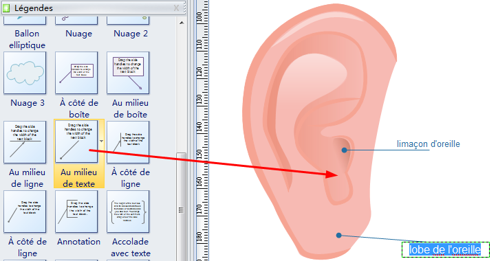 - De la bibliothèque Légendes, faites glisser et déposer une légende appropriée dans votre dessin, et double cliquez sur le texte de l'échantillon d'ajouter votre propre texte.