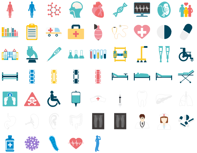 Il y a plus de 50 vecteur libre formes infographiques médicaux disponibles dans le logiciel Infographie Edraw, les utilisateurs peuvent modifier la taille, la couleur ou modifier les formes.