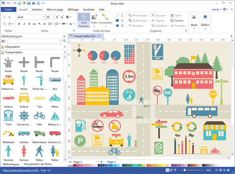 Créez des infographies de transport avec des icônes de transport intégrées dans la bibliothèque de symboles prédéfinie, et ce n'est que le début. Vous pouvez ensuite modifier les icônes avec la couleur et la taille que vous aimez. En outre, vous êtes autorisé à insérer des cartes pré-faites, des cartes, des diagrammes, des tableaux et des images locales dans votre conception. Dessiner des formes personnalisées est également disponible. Essayez cet outil puissant pour faire des infographies de transport impressionnantes qui vont impressionner vos lecteurs.