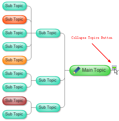 Vous pouvez afficher et masquer les sujets de différents niveaux dans votre carte supplémentaire à l'aide des boutons Développer et Réduire. C'est très efficace pour les Mind Maps de grande taille.