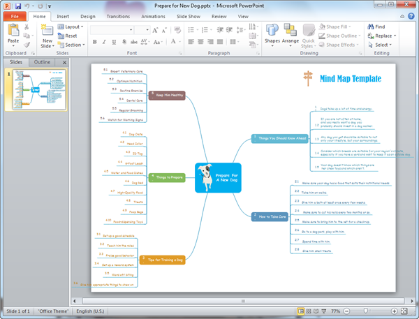Le modèle pour la création simple de carte mentale en PowerPoint est offert gratuitement. Il prend en charge PowerPoint en version 2007+.