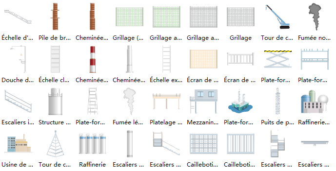 Cet article présente des symboles vectoriels d'installations d'usines, y compris l'échelle d'accès, la clôture de chaînette, la tour de communication, la cheminée d'échappement, l'écran de garde, la raffinerie, l'usine de traitement, la plate-forme pétrolière, la cheminée, etc. Les symboles vectoriels aident à élaborer des schémas et des documents P&ID précis et de qualité de présentation.