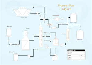 Le schéma de procédé fournit une représentation visuelle des étapes d'un processus. Un schéma de procédé sera constitué d'une tuyauterie de processus, des connexions avec d'autres systèmes, des équipements majeurs, des valeurs de contrôle et d'autres grandes valeurs. Il donne à chacun une compréhension claire du processus et contribue à identifier les opérations non-valeur ajoutée. Généralement, un VFI ne montre que l'équipement majeur et ne montre pas de détails. Par conséquent, vous feriez mieux de créer votre schéma de procédé sur votre propre afin qu'il se concentre sur les principaux processus de plantes et ne pas montrer des détails mineurs.