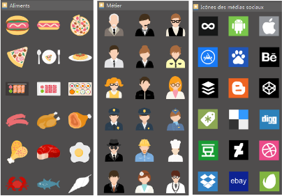 Le programme intègre des milliers d'illustrations, de cliparts et de formes vectoriels, y compris les symboles de base, les icônes, les personnes, les aliments, les éléments de vacances, et peuvent être utilisés gratuitement comme matériel de conception de prospectuss. Toutes les illustrations sont conçues sur une base vectorielle, afin que vous puissiez les personnaliser par des opérations telles que le changement de couleur, l'ajustement de taille, le regroupement / libération, l'augmentation et la diminution des pièces.