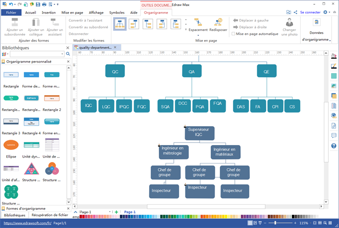 Créer un organigramme de département du service de contrôle de la qualité à partir du modèle