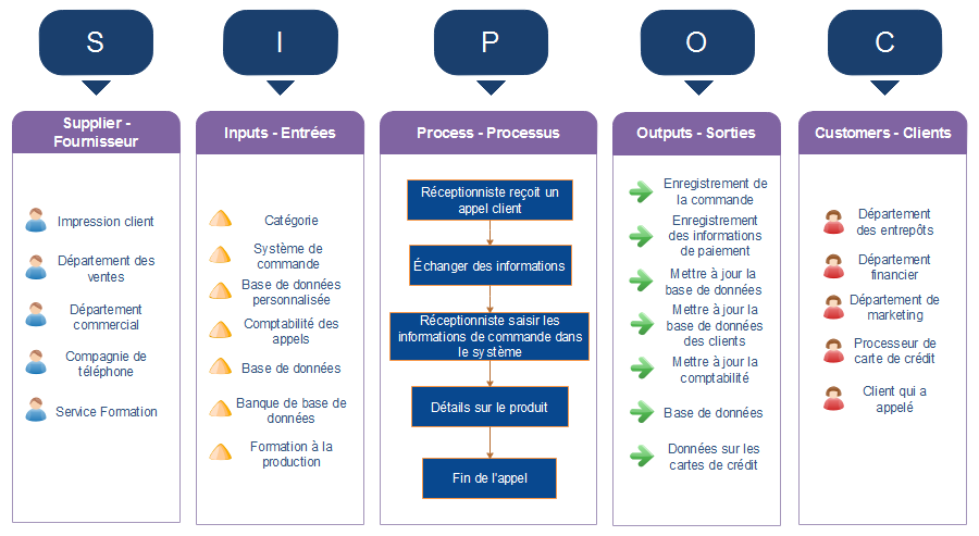 Exemple SIPOC : diagramme SIPOC du centre d'appel du catalogue détaillant