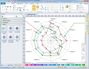 Les symboles de graphique en radar vous fournissent beaucoup de formes spéciales d'araignée, araignée, araignée zone, radar en pourcentage, polaires. Toutes les formes seront de bons assistants pour vous lorsque vous dessinez les graphiques en radar.