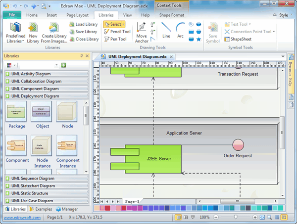Dans Edraw Max, les modèles de Diagrammes de déploiement UML et les formes se trouvent dans le dossier Logiciel .
