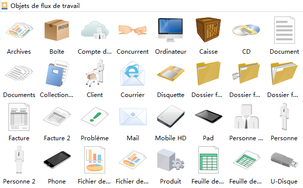 Les diagrammes de flux d'entrepôt utilisent des symboles de service spéciaux, des objets de flux de travail et des symboles de diagramme de base pour représenter les différents types d'actions ou d'étapes.