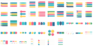 These basic infographic elements are very useful. This package contains basic shapes like circle, rectangle, oval, triangle, stars, heart shape, etc. All of them are essential components in infographics. Double-clicking the shape to input text, so they can not only be used as basic design shapes but also be used as basic text blocks.