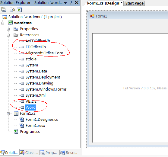 Due riferimenti sono statia ggiunti per EDOffice e tre librerie per Office e Word.