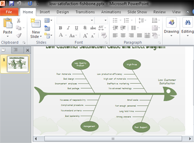 Diagrammi a spina di pesce per PowerPoint - Bassa soddisfazione dei clienti