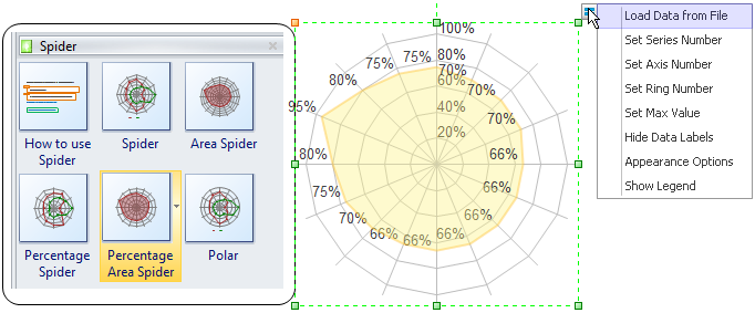 Puoi facilmente creare un grafico a ragnatela complesso a partire da modelli già pronti. Importando un file di dati, il processo viene completato in pochi click.