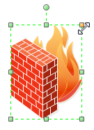 黄色のハンドルをドラッグしてから、ファイアウォール記号のサイズを調節できます。