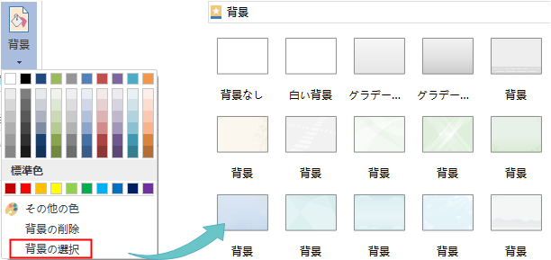 - 「背景の選択」をクリックして、デザインされた背景を選びます。