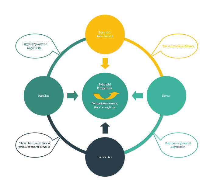 ファイブフォース分析を効率的に行い、ドキュメントを簡単に作るため、Edraw ファイブフォース分析ソフトはクイックスタート可能なファイブフォース分析テンプレートと活用事例をご用意しています。すべてのテンプレートと事例は無料で利用可能で、ご要望によって自由にカスタマイズすることもできます。PDF形式とEDDX形式(編集可)のダウンロードがサポートされます。お気に入りのテンプレートをダウンロードして、色を変更したり、コンテンツを付け足したりして、自分のユニークなファイブフォース分析ドキュメントを作成できます。