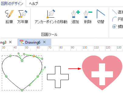 医療に良く使われる図形はソフトでたくさん内蔵されます。ベクトル書式なので、色、サイズなどの編集は可能です。
