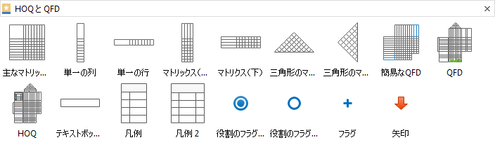 複雑で膨大なデータを含むQFDを手軽に作り上げるように、Edraw は様々な品質機能展開表の図形を用意します。これらあらかじめデザインされたベクターの図形には、塗りつぶし変更、サイズ調節、行列の追加/削除などの編集を行うことが可能です。