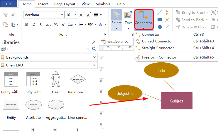 Step 3. Connect shapes by dragging proper connectors from left libraries or choose from Connector under Home page.
