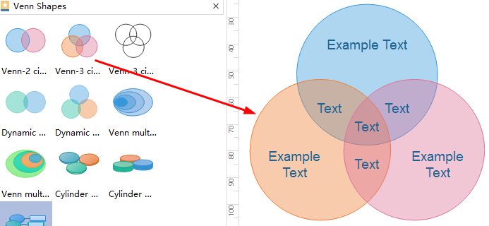 Step 2. Drag a Venn shape that you like from the library and drop on the drawing page. The sizes and colors of the circles can be changed for different situations.