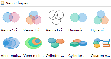 The picture below shows Venn diagram shapes which are provided by our Edraw Max for Linux. Just drag and edit these shapes to fit your different needs.
