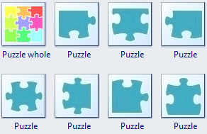 The designer can find the following puzzle pieces in the Marketing Shapes template.
