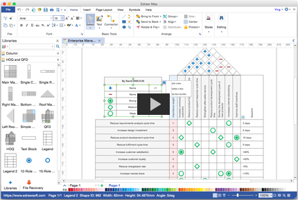 Программа включает в себя умные встроенные символы: временная шкала, таблица состояния, диаграмма Ганта, календарь и HOQ. Плавающие кнопки и автоматизированные инструменты позволяют вам управлять этими символами с молниеносной скоростью.