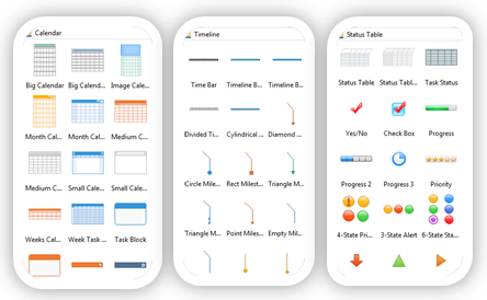Готовые предустановленные помогут менеджеру проекта упростить работу. Все примеры высокохудожественные и полностью редактируемые. Вы можете конвертировать их в различные форматы, включая графику, программы MS и SVG. Они разработаны экспертами, поэтому вы можете использовать их с небольшими изменениями.