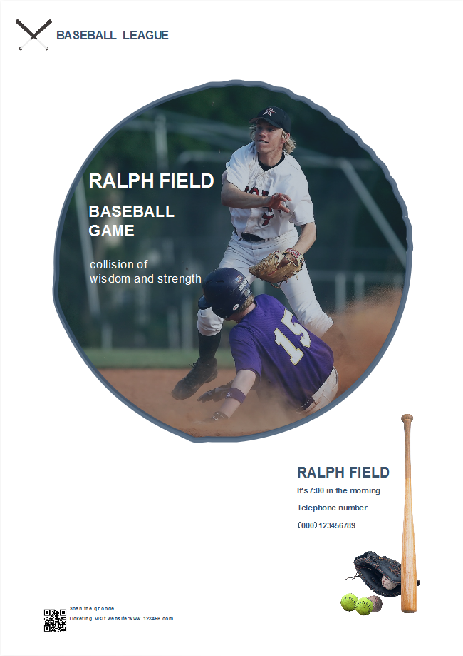A professional designed baseball business poster template from Edraw is waiting for you in the free download version. Use it for sports competitions for business uses easily by applying the template and customizing the contents.