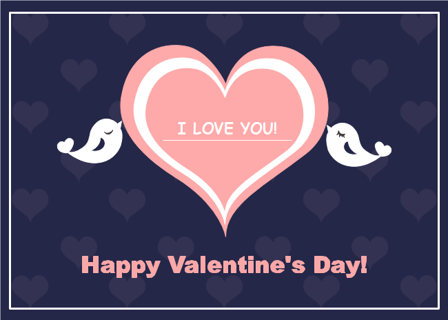This bird kiss Valentine's Day card template is centered with a pink heart and two kissing birds. The background is dark for emphasis on the heart. With the exquisite design of Valentine's Day card template of Edraw, users can download free and share with your lover.