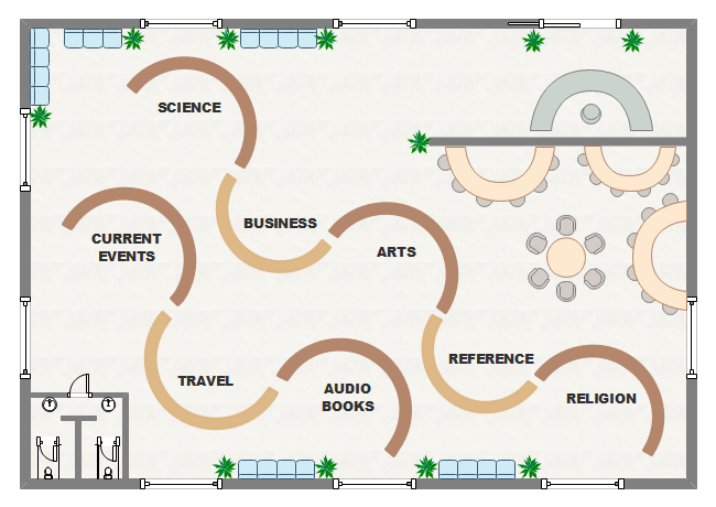 The comfortable atmosphere of a public-friendly bookstore can be easily shown by this Edraw book store layout template. With the support of Edraw, surely you will have a comprehensive set of layout and floor plan design resources and elements.