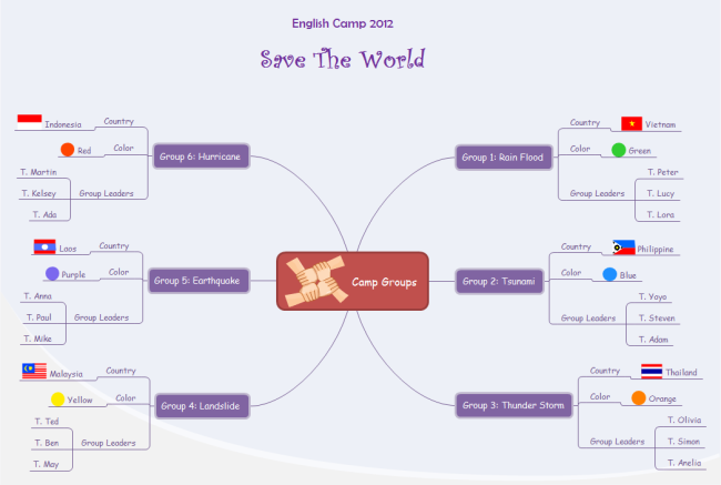 A free customizable camp groups brainstorming template is provided to download and print. Quickly get a head-start when creating your own brainstorming map. You can add shapes by only one click and shapes connect automatically.