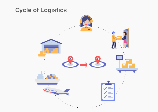 The cycle of logistics graph reveals the basic operation procedure of logistics. This vector graphic stock content can be used for print, web design and social media marketing. You can free download this graph in high-resolution for all creative projects.