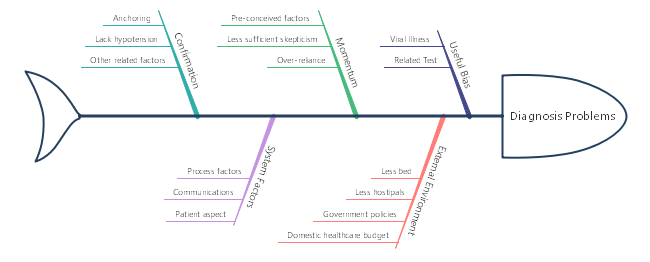 Let this diagnosis fishbone diagram template to assist you find out the deeply rooted operation problems of your medicial organization. Add more text and try free fishbone diagram medical symbols in the free download version now.