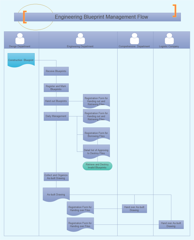 A free customizable engineering blueprint management flowchart template is provided to download and print. Quickly get a head-start when creating your own engineering blueprint management flowchart. It's incredibly easy to visualize complicated processes with Edraw.