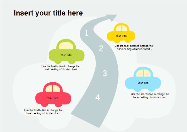 This four-car list 2D Presentation template is consist of a meandering road and four vivid car blocks. This template gives a direction which could be used in presenting aims and purposes. Download and begin editing and formatting 2D presentation slide with Edraw.