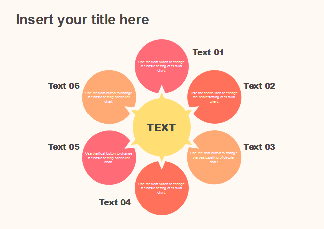 This template is a warm color style which background covers light pink color and all the cycle blocks are orange tint. Six bright cycle blocks are the extension of the center cycle. Feel free to fill your contents with this warm main idea cycles 2D presentation template and apply it to business and education fields.