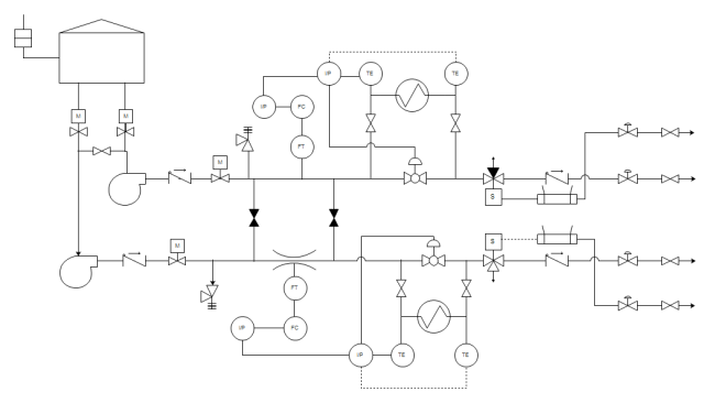 This manufacture P&ID template is created using vector P&ID symbols which are included in Edraw. To use this functionality, open the P&ID symbol library and drag required shapes and design any P&ID you want.