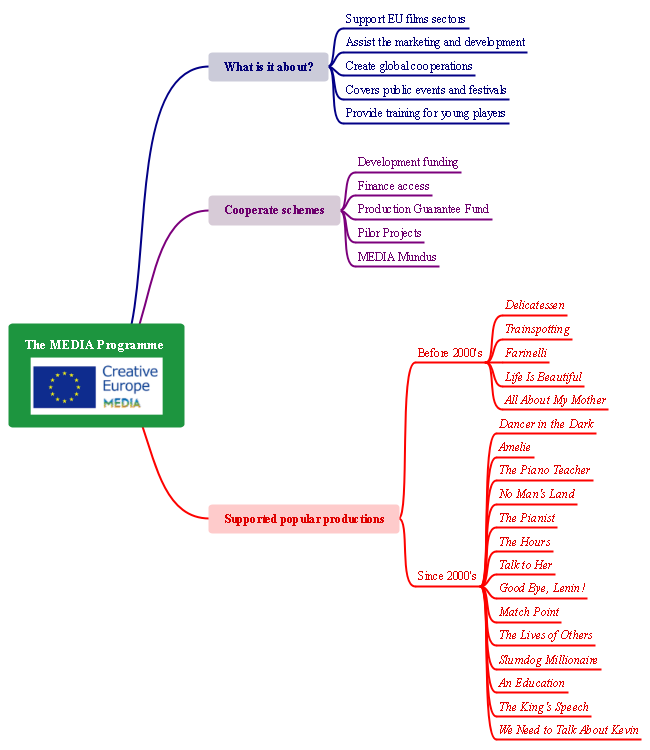 If you are searching for some EU movies and news, then don't miss out this media programme mind map template that shows you all the excellent EU movies choices. Feel free to try more media mind map design templates and symbols in the Edraw MindMaster.