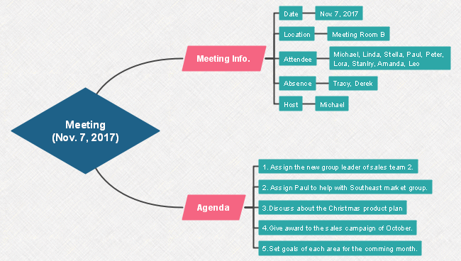 This is a simple meeting minutes mind map template. Compared with traditional minute-taking methods, mind mapping is more logical and streamline with keywords rather than long sentences and paragraphs. Explore suitable templates and customize your own style of meeting minutes at work.