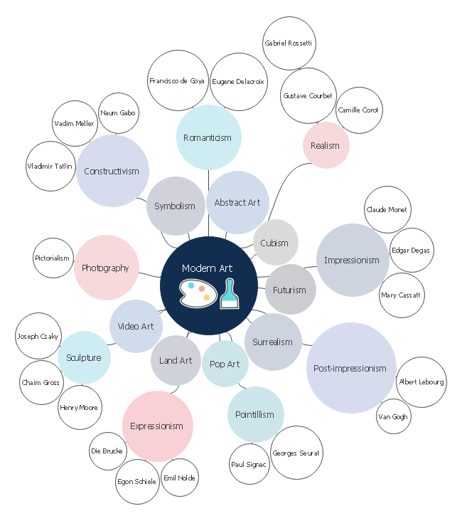 Explore more about the modern art world by using this modern art bubble map template. Know the famous artists like Van Gogh and Claude Monet with their schools. See more bubble map templates in the free mind mapping tool Edraw MindMaster right away.