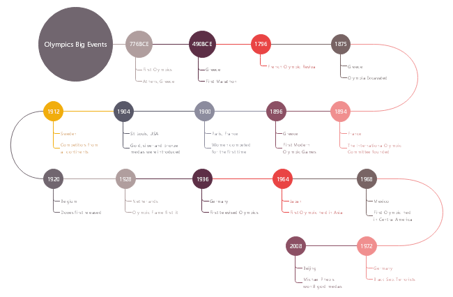 This eye catching Olympic history timeline template shows you a detailed development of milesones in the Olympic events from the Ancient Greece to modern times. Explore more sports related timeline templates and symbols in the free download now.