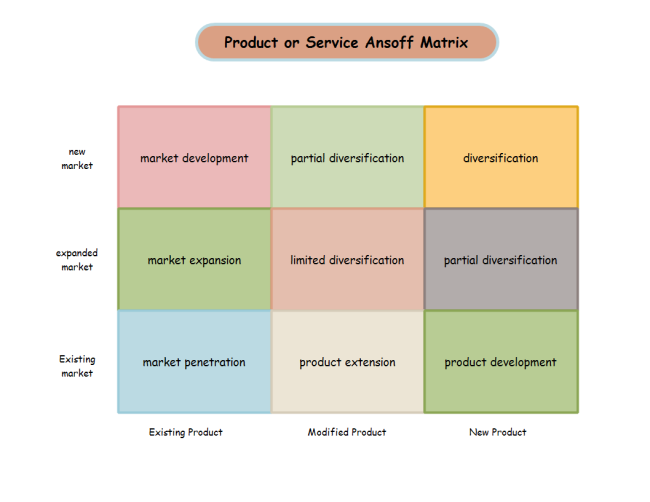 A free customizable product ansoff matrix template is provided to download and print. Quickly get a head-start when creating your own product ansoff matrix diagram. A diversity of embedded themes helps present different visual effects, allowing you to apply different formatting choices easily.