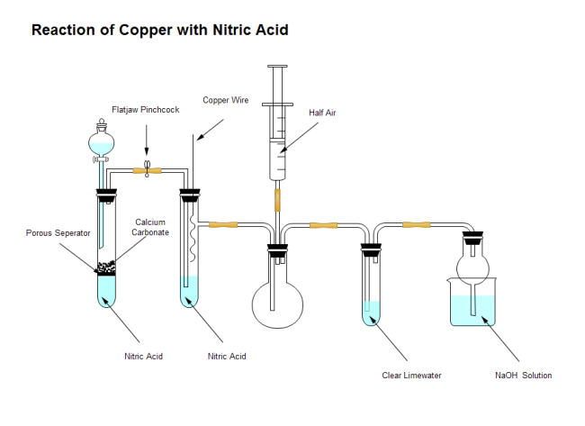 A free customizable reaction of copper with nitric acid template is provided to download and print. Quickly get a head-start when creating your own science illustrations. It can be used to facilitate teacher's work, as in class, illustrations are more straightforword and easy to understand than words.