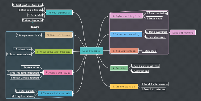 The key spirit of sales strategies has a close relationship with customer feedback management and product quality development. Wanna know more? Just download this sales strategies mind map template and edit it based on your needs.