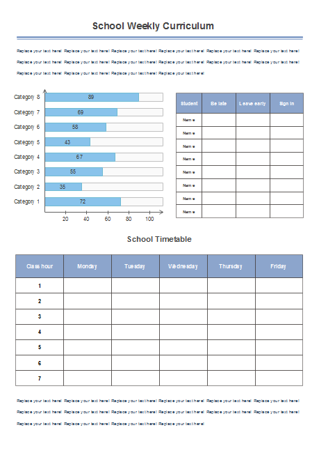 This page offers a downloadable school curriculum form template. Change the row/column number, description text and bar chart data to fit your own school curriculum schedule. Edraw form maker allows users to make forms for different purposes, such as quote form, invoice, fax cover sheet, etc.