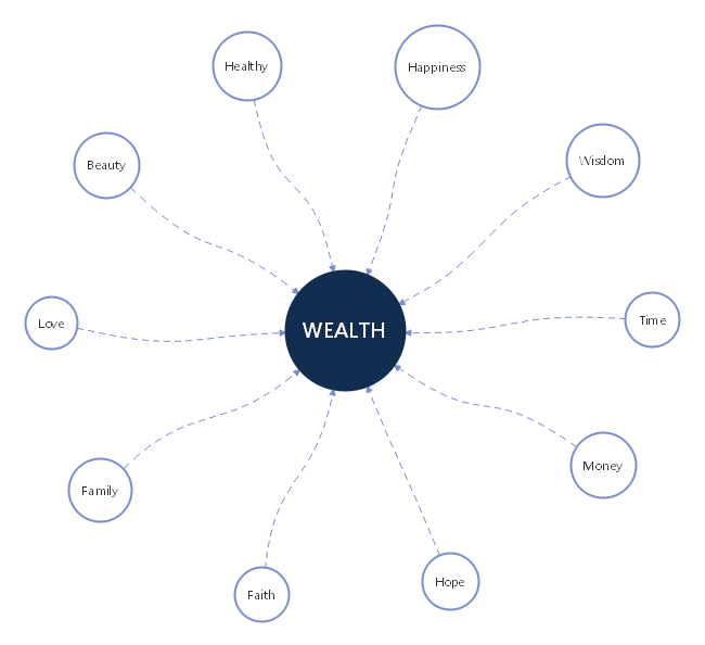 How to live a happy life and gain adequate wealth? Why not see this wealth spoke chart template for more inspiration? Free download the mind map software to edit this template based on your own layout structure and theme style now!