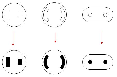 The following conductor symbols show the F/M 2-conductor which change the symbols data from female to male.